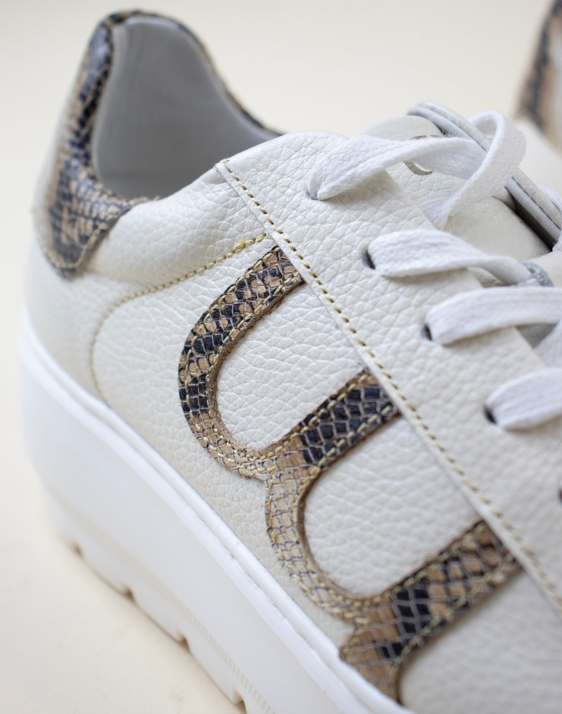 Están hechos en cuero crema con detalles en pitón que le da un toque guay, perfectos para llevar con faldas, jeans o vestidos, su suela es ligera, tiene 5 cm de altura pero sin quitar una pizca de comodidad ¡No te quedes sin ellos, son la pieza que le falta a tu armario!