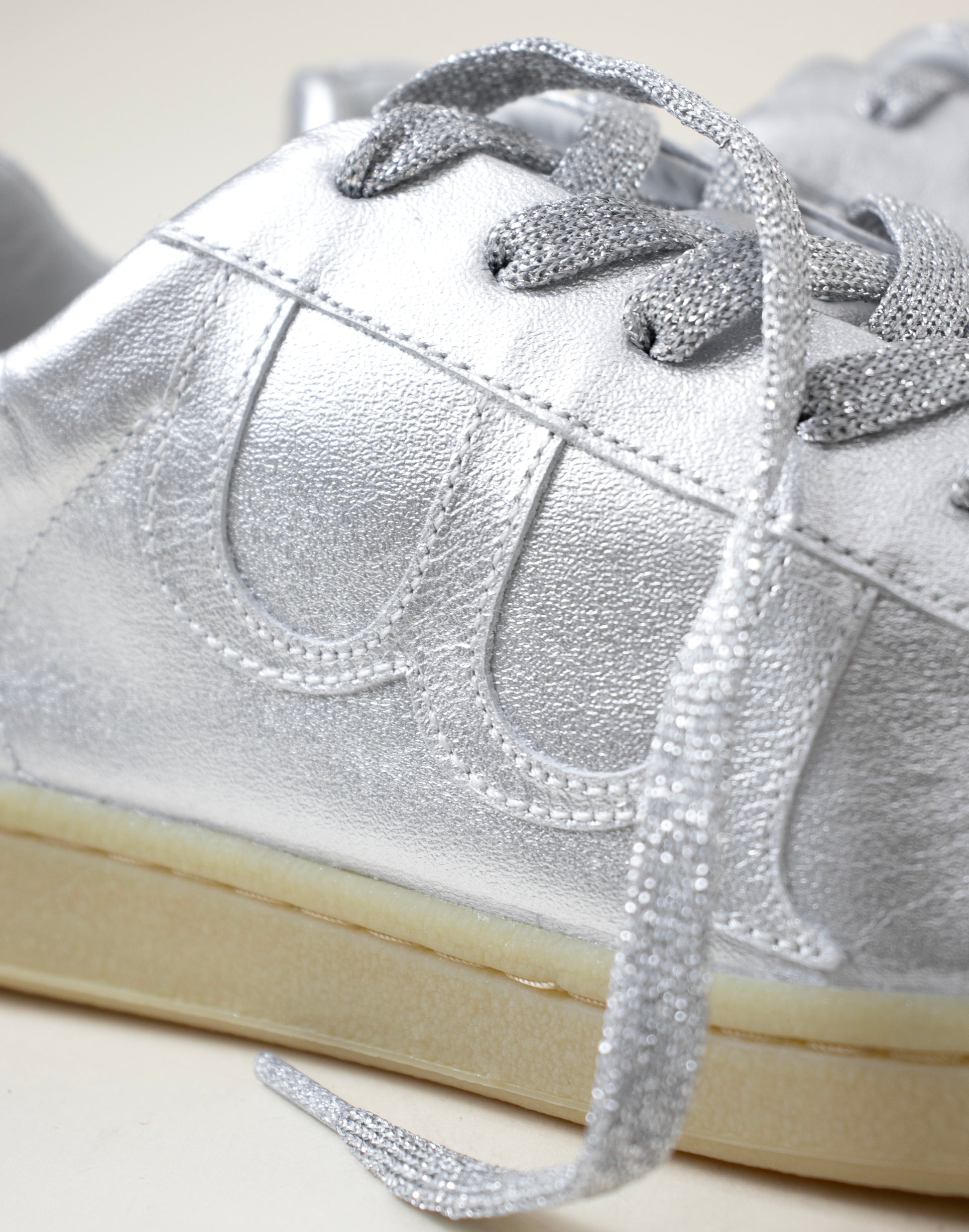 ¡Prepara tus pasos para recibir Kisses! Estas zapatillas plateadas, con sus detalles metálicos en los laterales, son un verdadero beso de estilo audaz y moderno. Brillantes y llamativas, te harán destacar en cada paso, añadiendo un toque de rebeldía y glamour a cualquier conjunto. ¡Enciéndete con los Kisses y deja una estela de brillo!