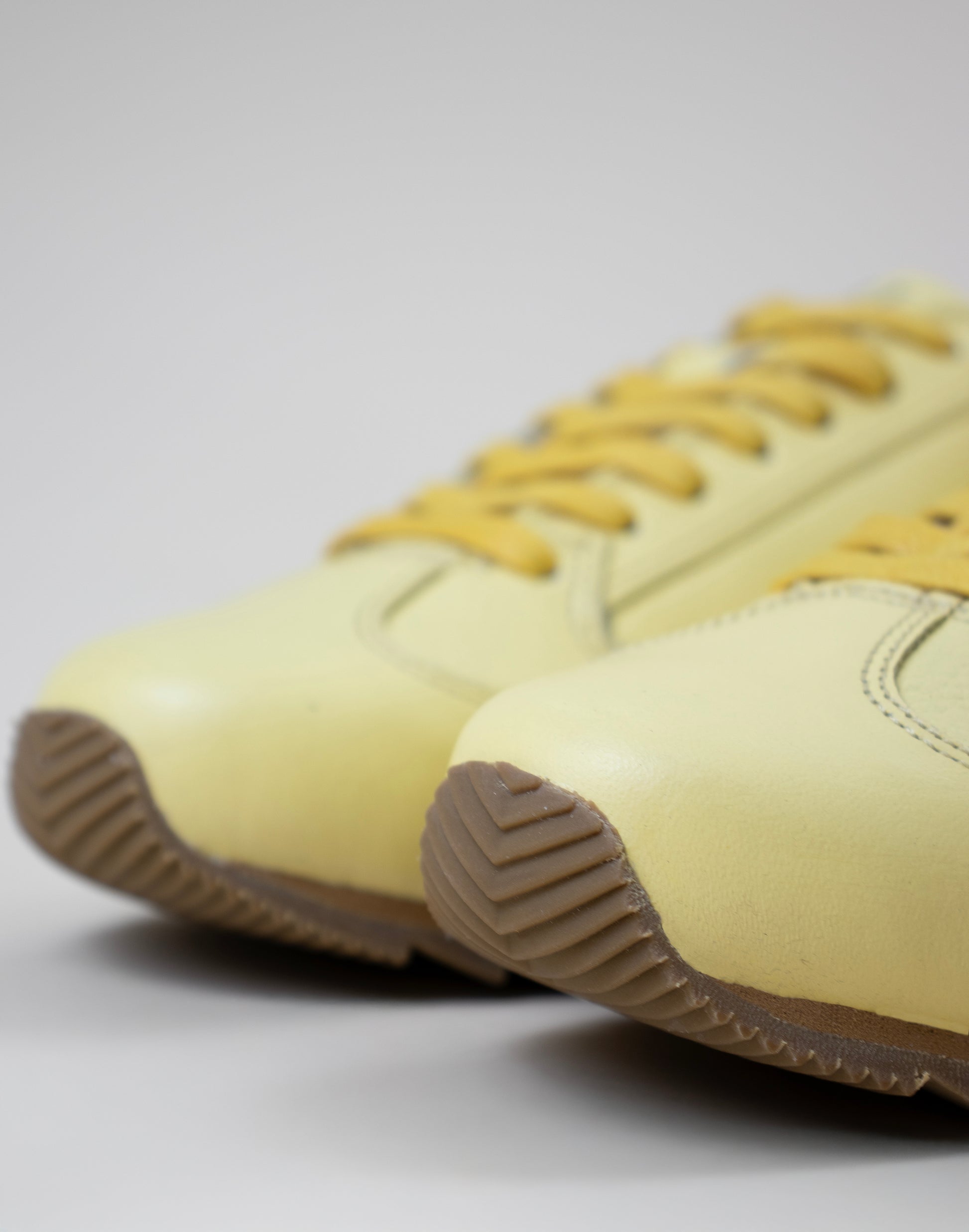 Suaves, cremosas y llenas de personalidad: ¡así son nuestros Mantequilla! Su vibrante color amarillo mantequilla, contrastado con cordones llamativos y detalles marron en el talón, las convierte en el centro de todas las miradas. Con una suela texturizada para un agarre excepcional, son la elección perfecta para quienes aman el color y no temen brillar con estilo propio.